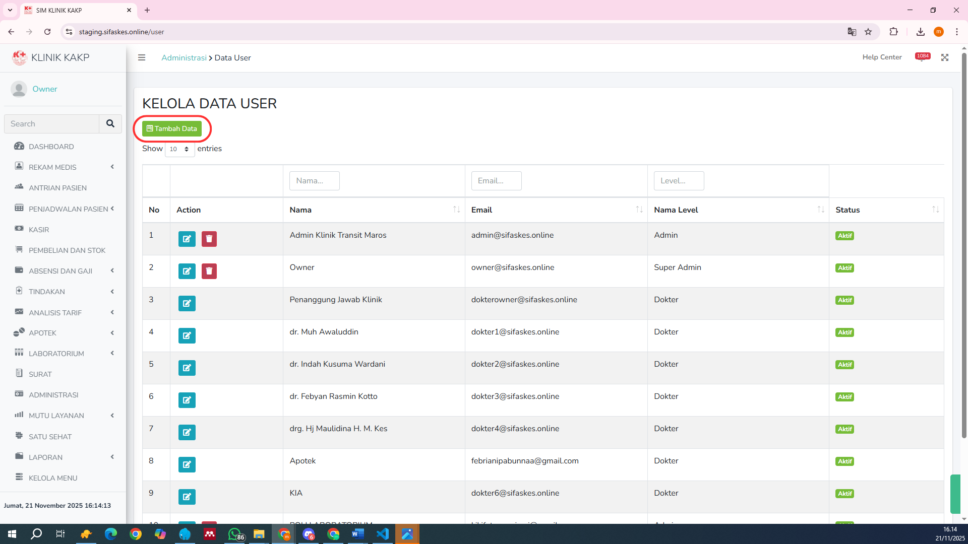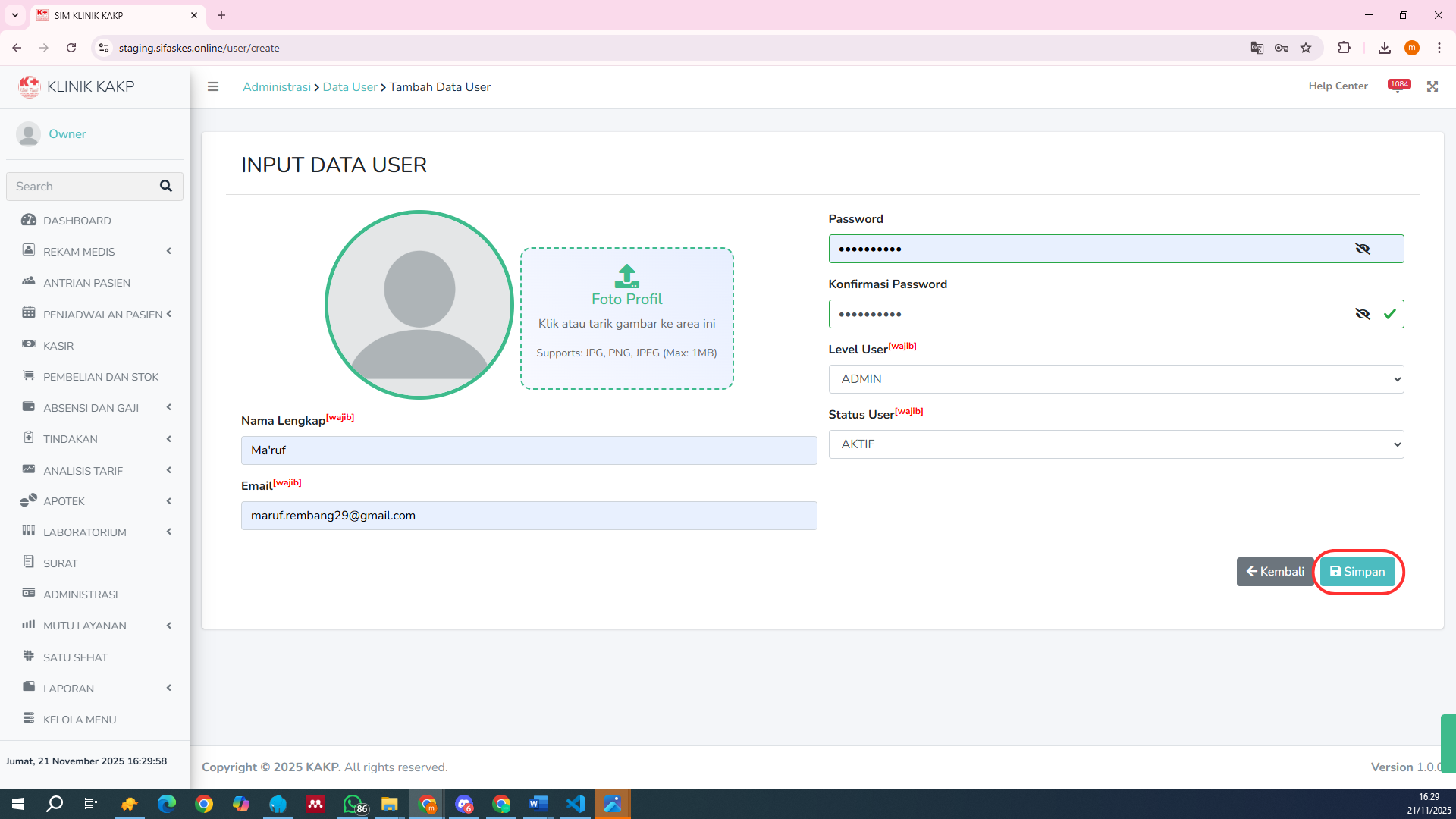 Setelah semua data diisi, klik tombol Simpan untuk menyimpan akun pengguna baru