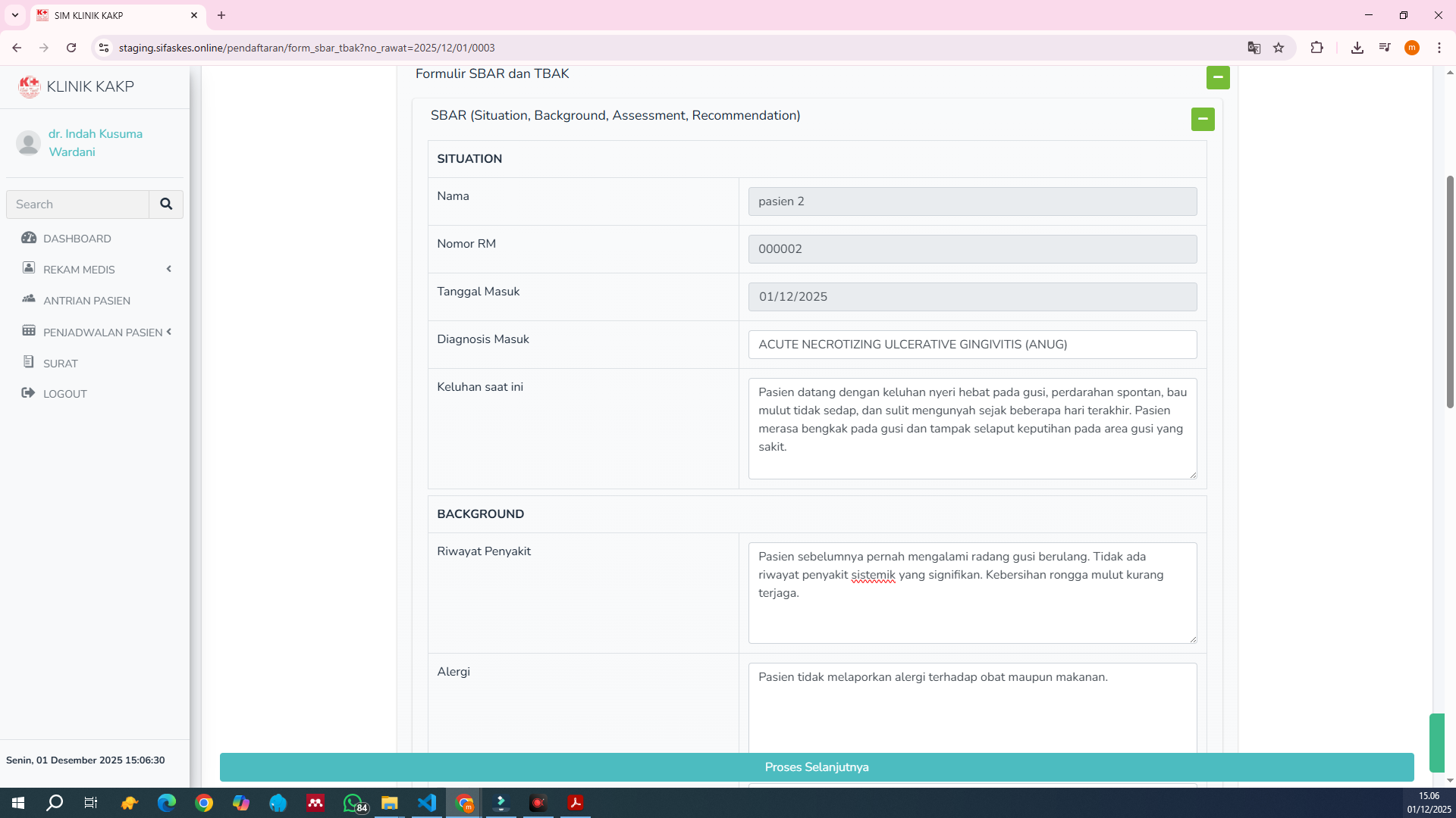 Lengkapi semua informasi yang diperlukan pada form SBAR