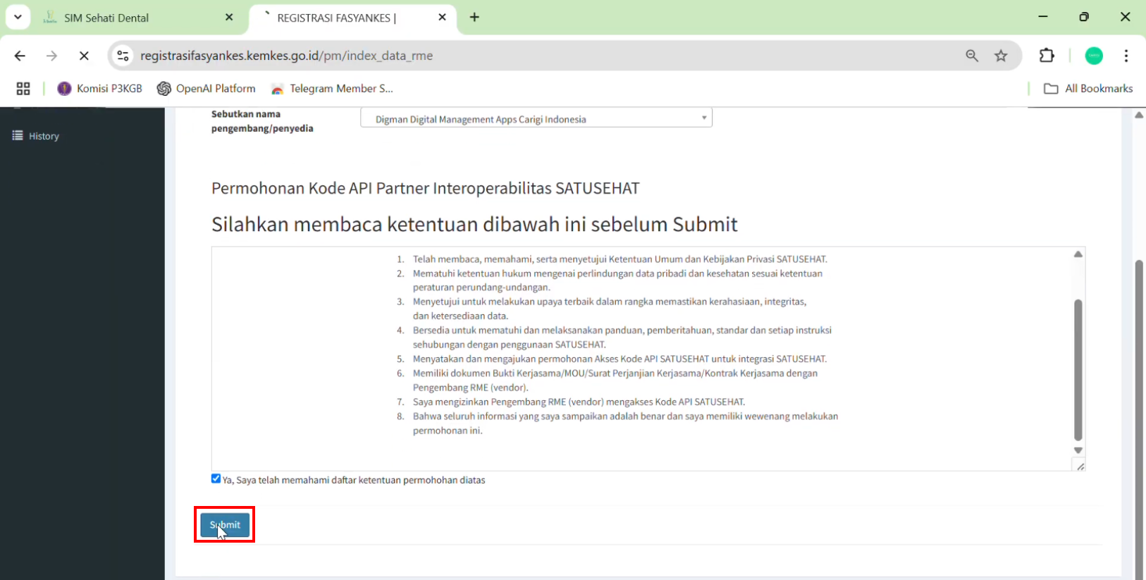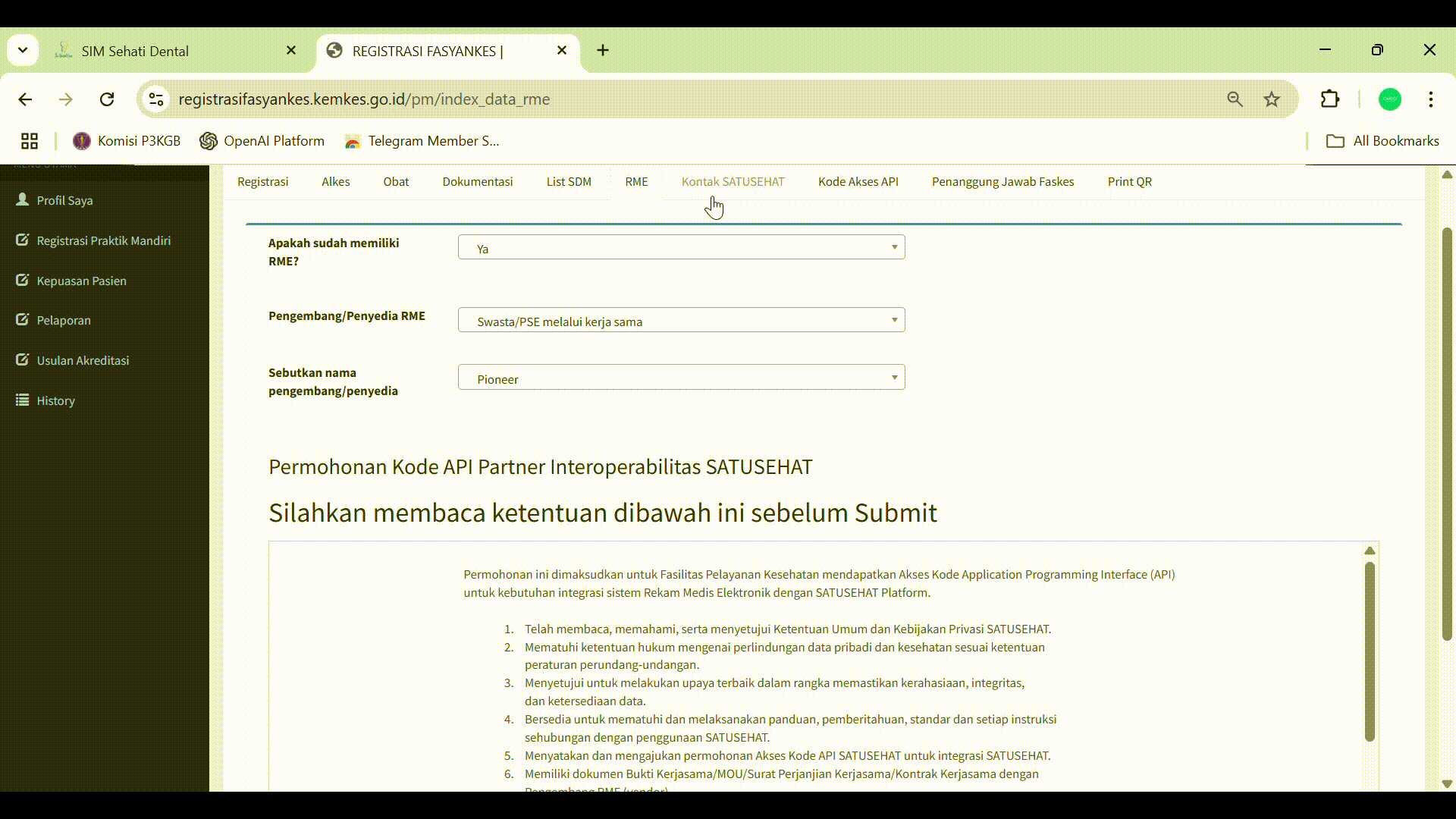 Fasilitas pelayanan kesehatan melakukan registrasi sebagai langkah awal untuk integrasi dengan sistem informasi kesehatan nasional.