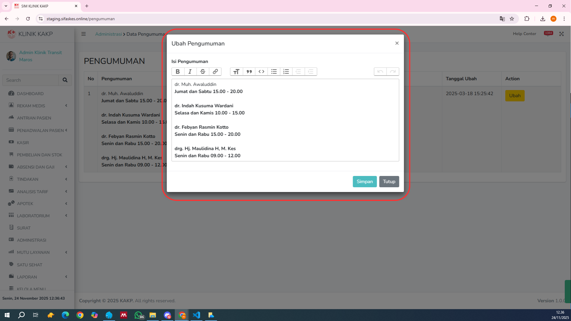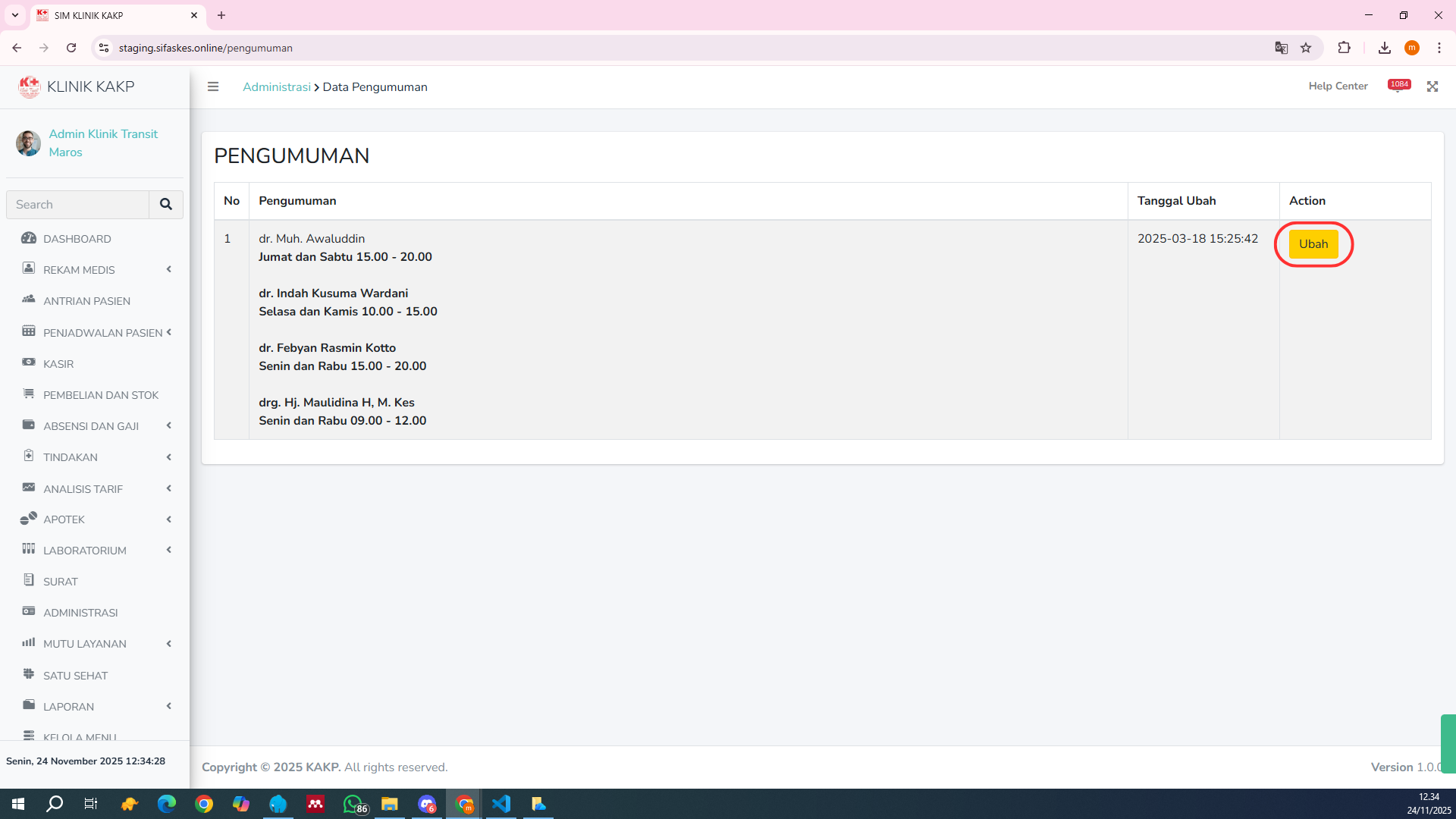 Cari dan klik menu Pengumuman di halaman Administrasi