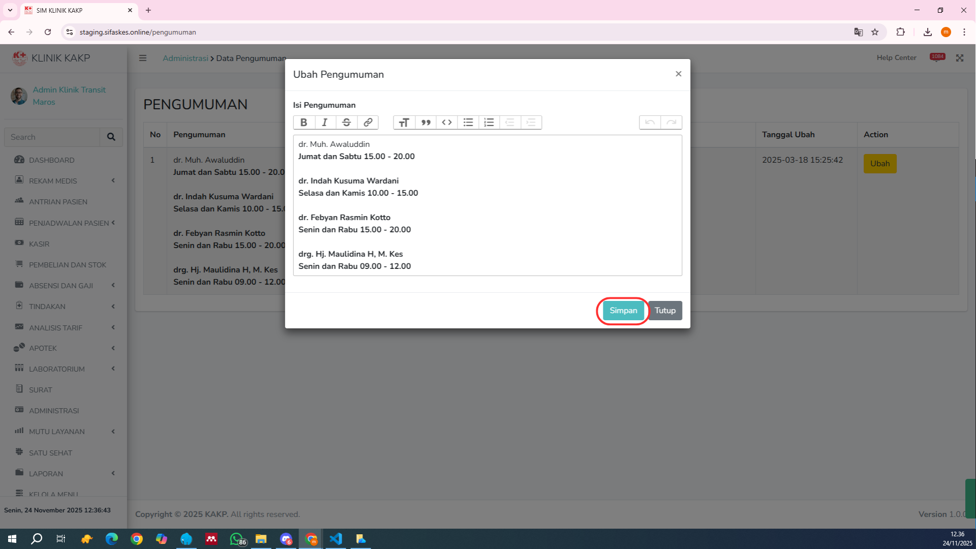 Temukan dan klik tombol Ubah untuk membuat atau mengedit pengumuman