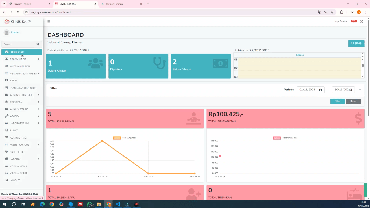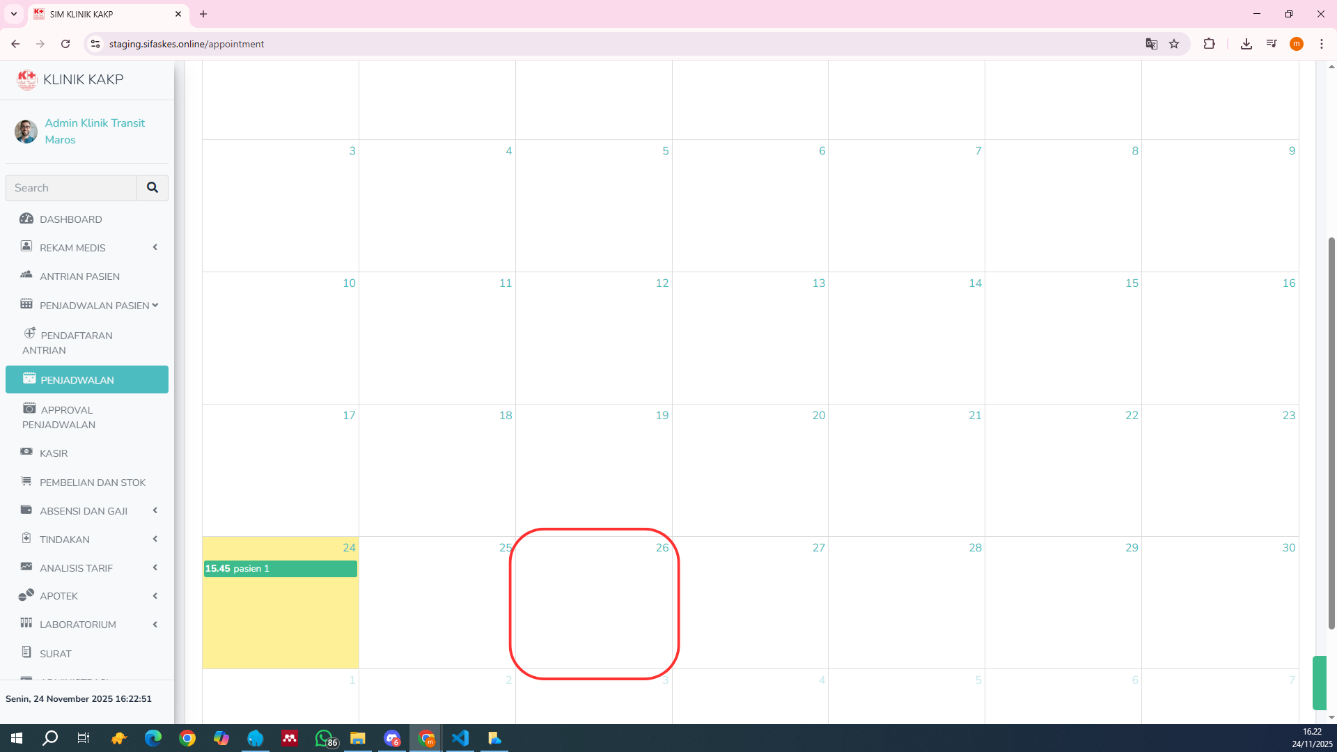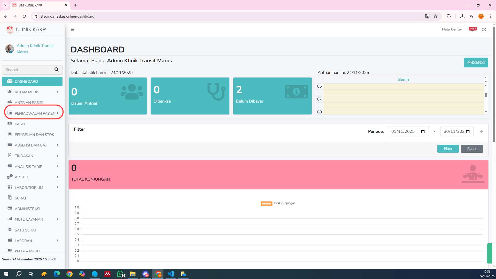 Klik menu Penjadwalan Pasien di sidebar navigasi