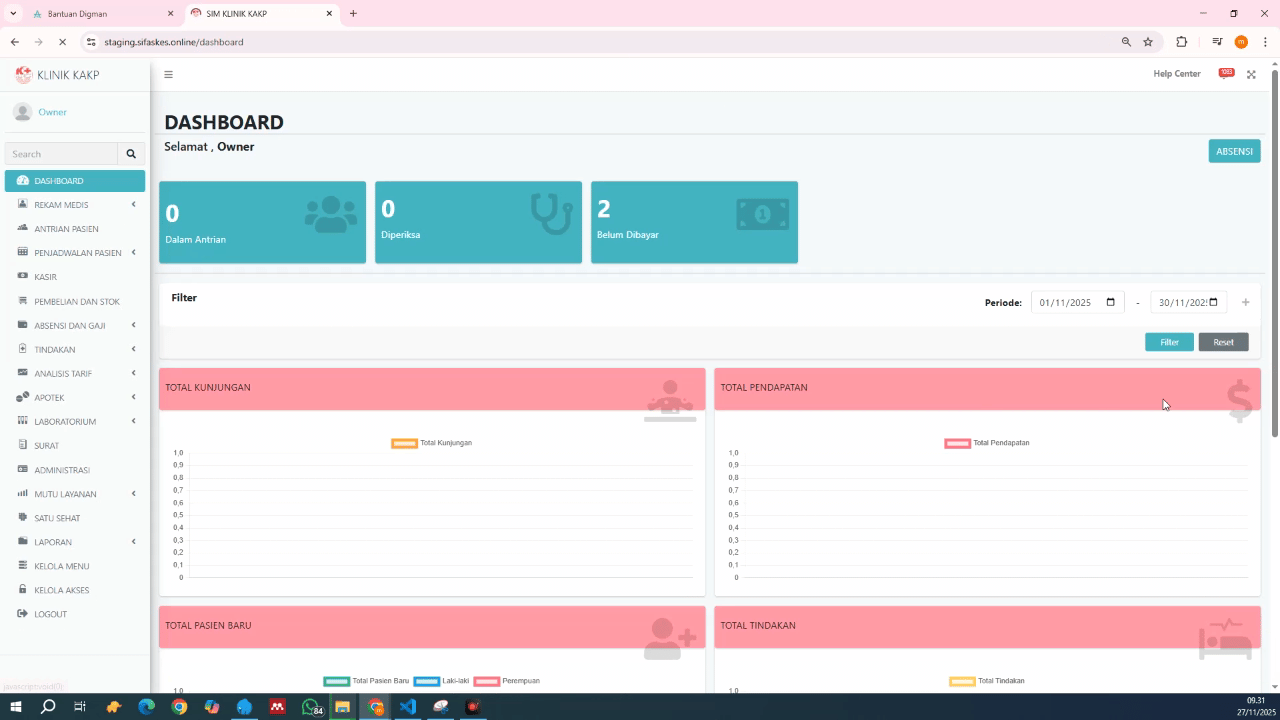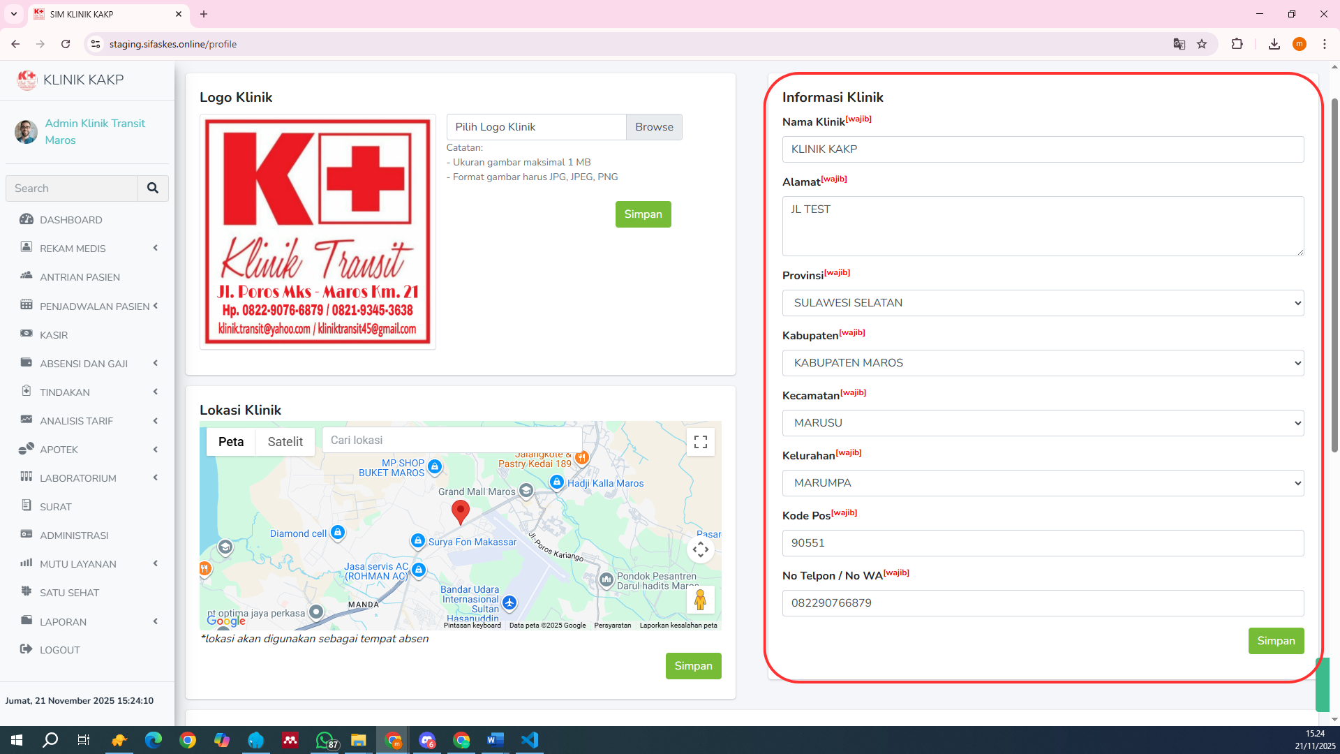 Isi semua field yang diperlukan dengan data klinik Anda