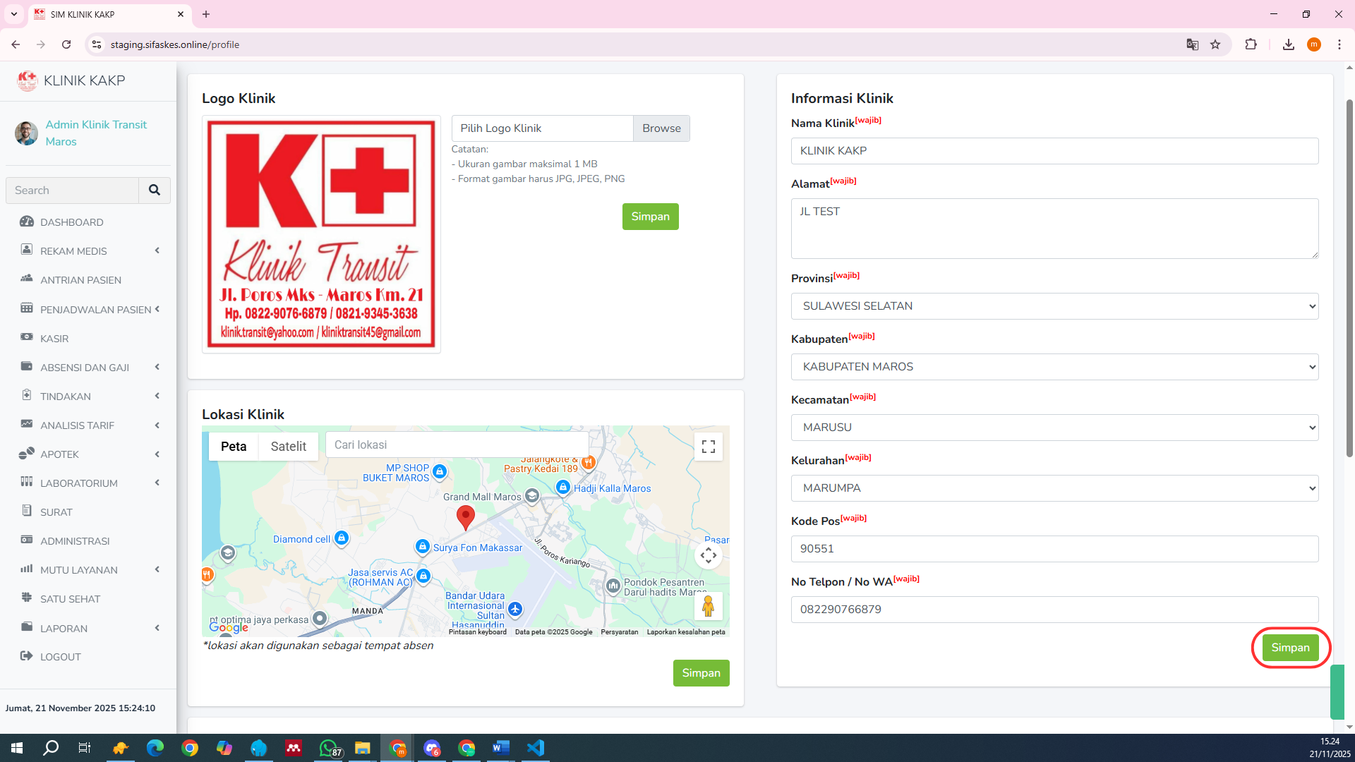 Setelah semua data diisi, klik tombol Simpan untuk menyimpan perubahan